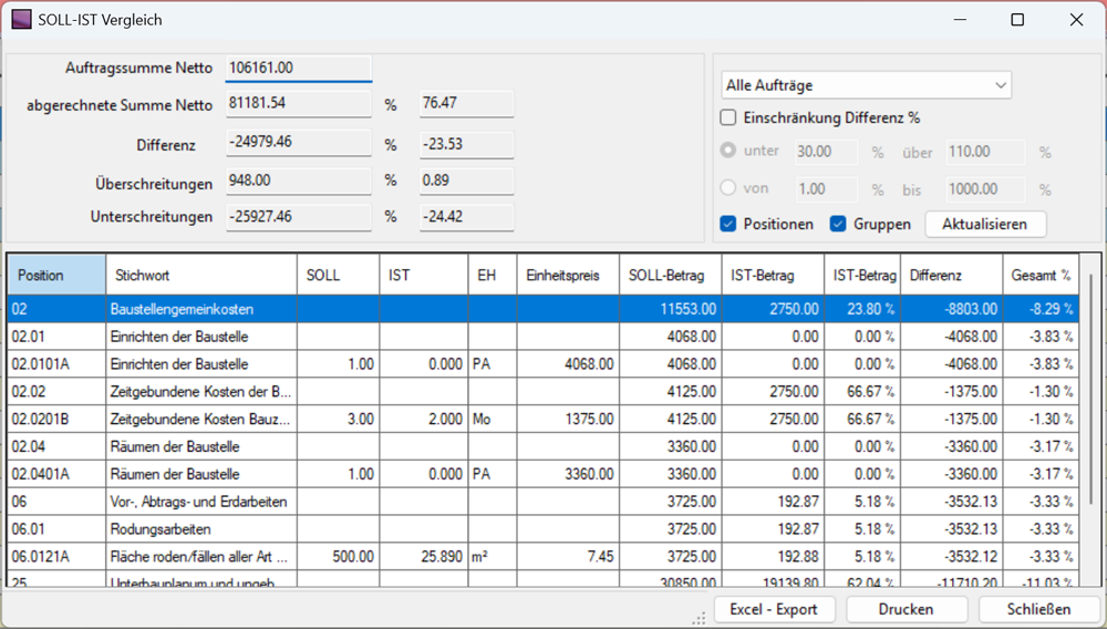 Der SOLL-Ist Vergleich verfügt nun über ein eigenes Auswertungsfenster.